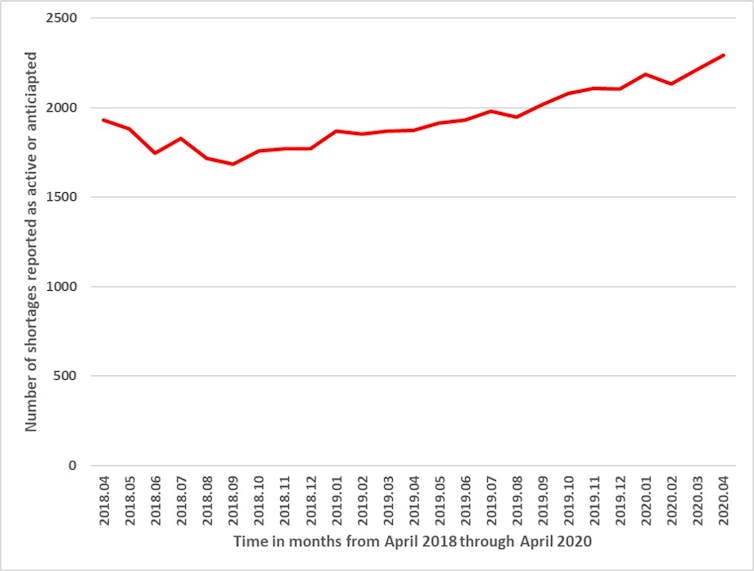 Although the full effects of COVID-19 on drug shortages are not yet known, it is notable that manufacturers reported 221 new shortages in April 2020, compared to 148 in March, 59 in February and 104 in January. In other words, a recent increase in shortages, which could be attributable to COVID-19, may worsen existing problems with shortages.